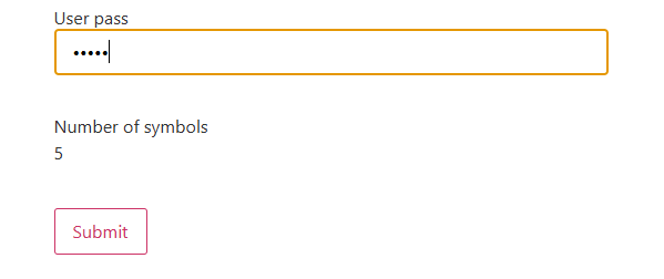 On the front end, the Calculated Field counts the number of symbols entered in the password field.